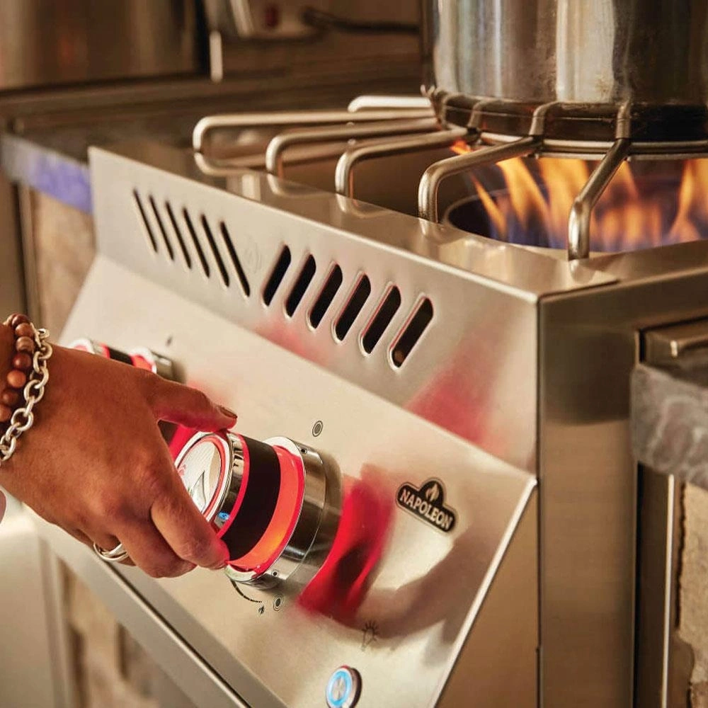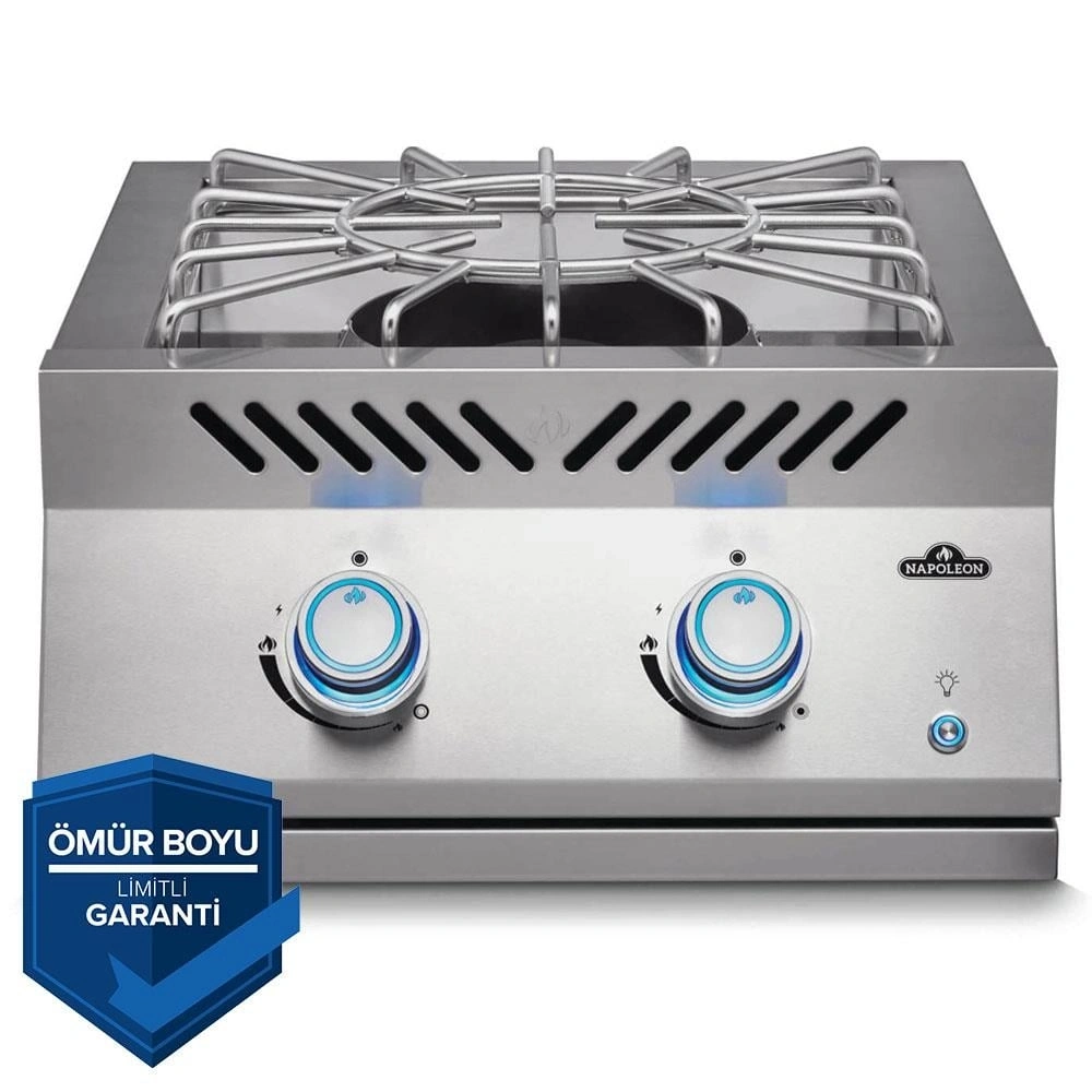 Tezgah üstü / dış mekân mutfağına entegre kullanım için tasarlanan Napoleon Built-In 700 Serisi Güçlü Ocak, kendini şef hisseden herkesin hayalidir. Bu ürünün farkı:iki kademeli (yüksek/düşük) güçlü ocak yapısı sayesinde üstün sıcaklık kontrolü sunar; deniz mahsulleri haşlaması gibi büyük yemeklerden, taze sos gibi küçük hazırlıklara kadar her şeyi kolaylaştırır. JETFIRE™ ile arıza yapmayan, pilsiz ateşleme anında yanar. SafetyGlow özellikli kontrol düğmeleri karanlıkta kullanımda konfor sağlar; Built-In 700 Serisi gazlı mangalla entegre kullanıldığında düğmeler mavi yanar, brülör açıkken kırmızıya döner.* İki parçalı paslanmaz çelik pişirme ızgaraları büyük tencereleri taşır ve çıkarılabilir orta halka, wok tavasını mükemmel şekilde içine yerleştirir. Dahil paslanmaz çelik kapak ile hava durumu ne olursa olsun ocağınız kullanıma hazır kalır.