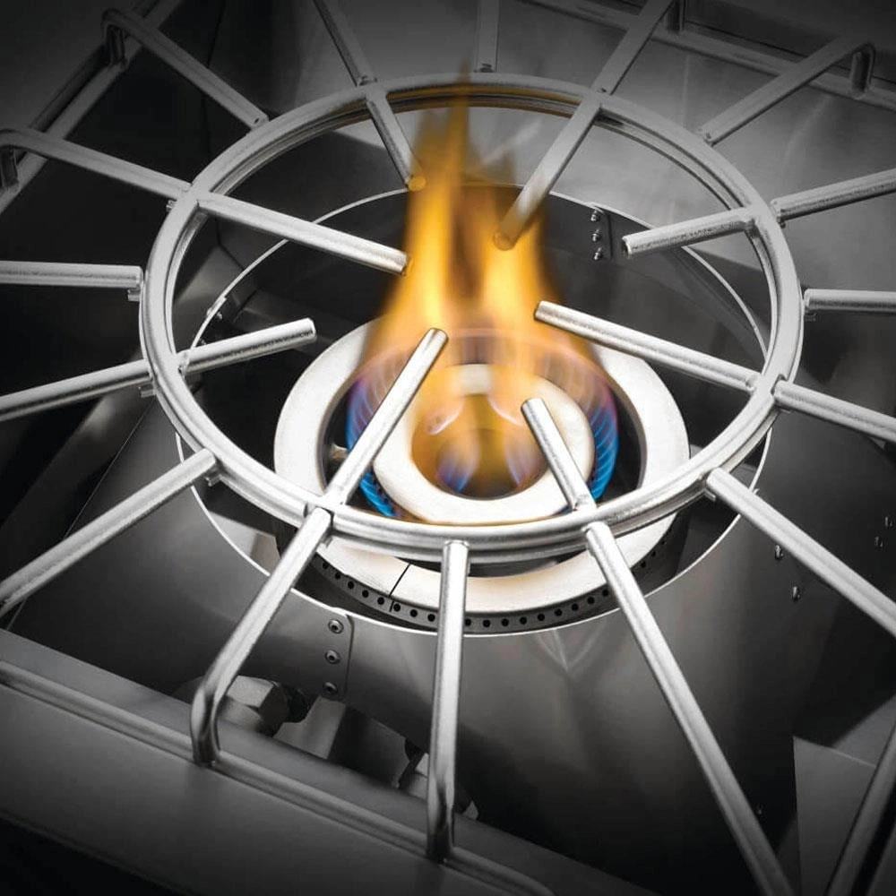 Tezgah üstü güçlü ocak, özel dış mekân mutfağınıza ekstra ve kullanışlı bir istasyon ekler. İki kademeli (yüksek/düşük) sıcaklık kontrolü; büyük tencerelerde haşlama yapmayı, küçük sosları kısık ateşte pişirmeyi kolaylaştırır. JETFIRE™ pilsiz ateşleme ile anında yanar. İki parçalı paslanmaz ızgara büyük tencereleri taşır; çıkarılabilir orta halka wok tavası için idealdir. Built-In 700 Serisi gazlı mangalla entegre kullanıldığında SafetyGlow düğmeleri mavi yanar, brülör açıkken kırmızıya döner.*