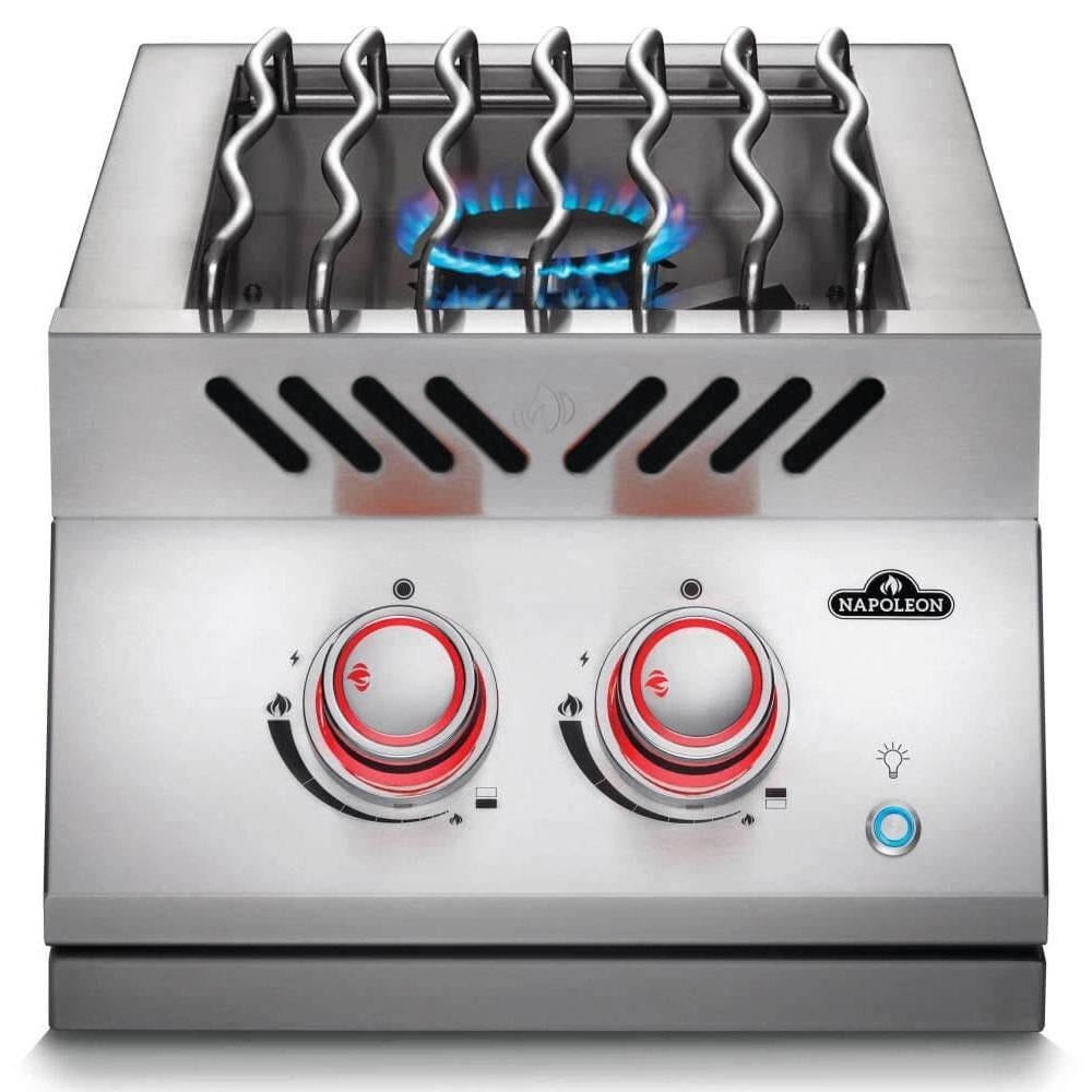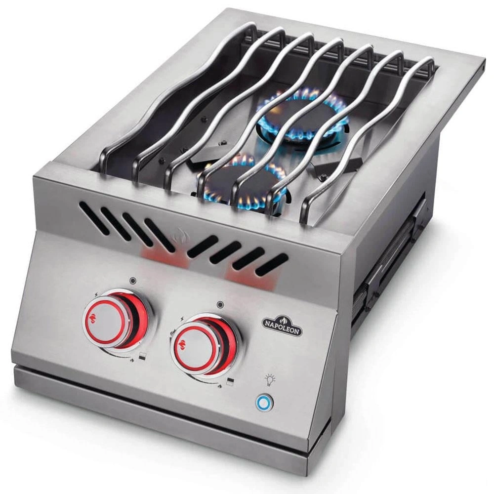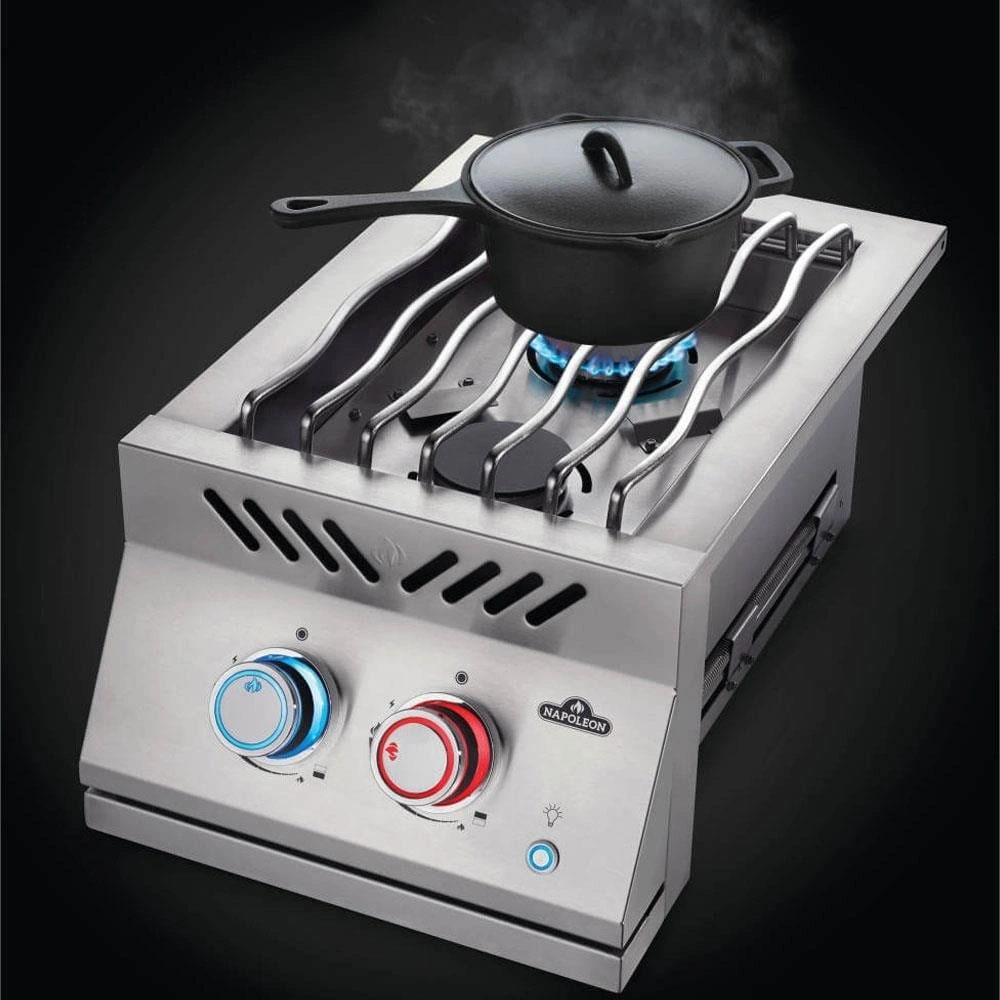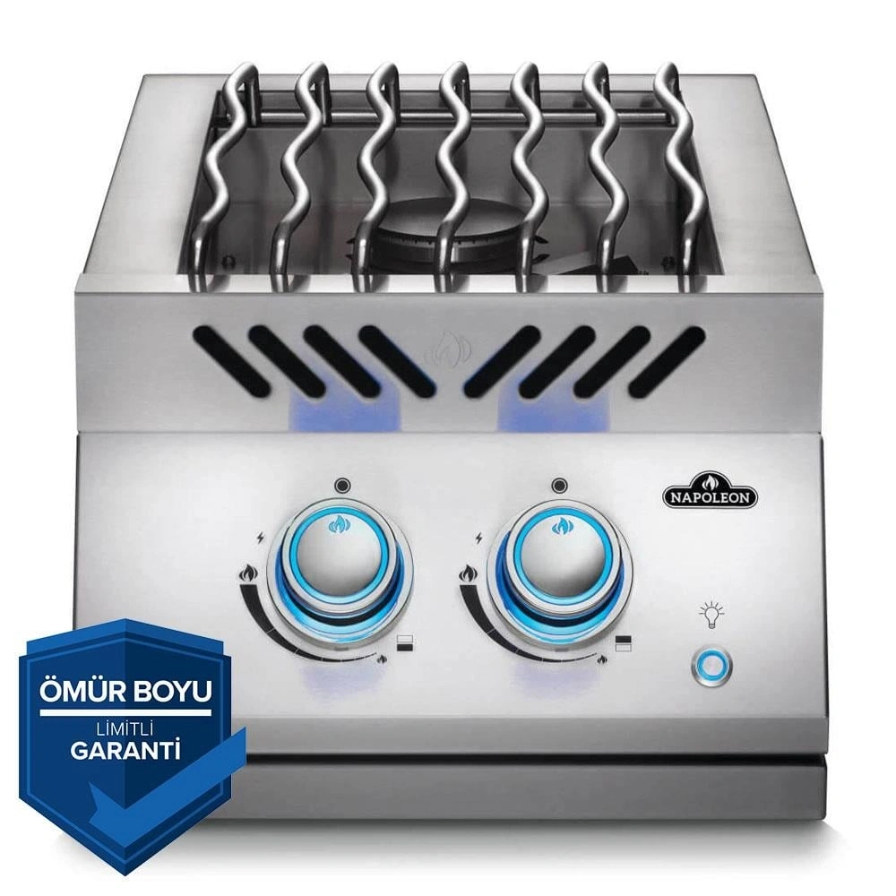 Tezgah üstü / dış mekân mutfağına entegre kullanım için tasarlanan Napoleon Built-In 700 Serisi İkili Ocak, mangalınız kullanımdayken daha fazla alan sağlayan 30 cm’lik ikili ocak ile sos & garnitür hazırlamanız, yemek ısıtmanız veya çay demlemeniz için ideal bir tamamlayıcı istasyon sunar. JETFIRE™ Ateşleme Sistemi ile brülörleri tek elle anında ateşleyin; pilsiz ve emniyetli ateşleme ile pratik kullanım elde edin. Bu ürünün farkı:İkili yapısı sayesinde aynı anda iki farklı tencere/tava ile çalışabilir, hazırlık akışını hızlandırabilirsiniz. Ayrıca Built-In 700 Serisi Gazlı Barbekü ile entegre kullanıldığında, SafetyGlow özellikli büyük ergonomik kontrol düğmeleri mavi ışık ile ambiyans sağlar ve brülörler kullanımdayken kırmızıya döner.* Birinci sınıf paslanmaz çelik yapısı ile dış mekânda uzun ömür ve şık görünüm hedefler. Dahil paslanmaz çelik kapak sayesinde, hava durumu ne olursa olsun ocağınız kullanıma hazır kalır.