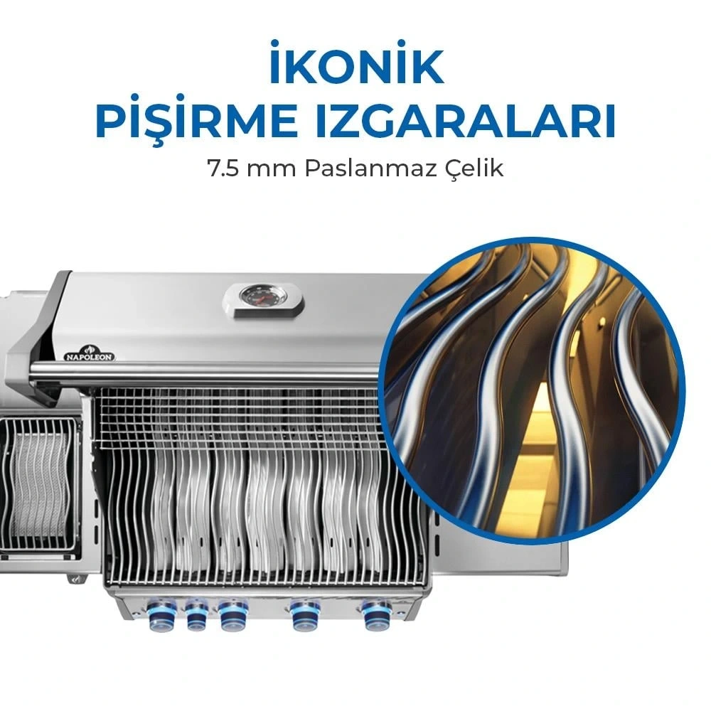 ![]() | PASLANMAZ DETAYLAR Napoleon Rogue Pro S serisi gazlı barbekülerin en büyük farklarından birisi de paslanmaz çelikten üretilmiş kapağı, gövdesi! Ayroca, ızgarası, aroma rayları, yağ tepsisi ve sıcak tutma ızgarası da paslanmaz çelik! |