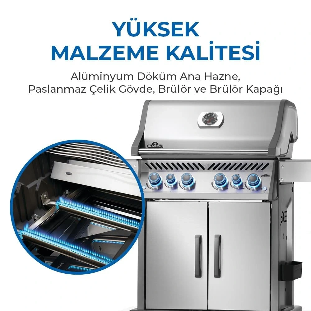 ![]() | Napoleon gazlı mangalların tamamı alüminyum döküm hazneye sahiptir. Yüksek sıcaklığa, kızgın yağlara mangalın ömrü boyunca tavizsiz dayanır! |